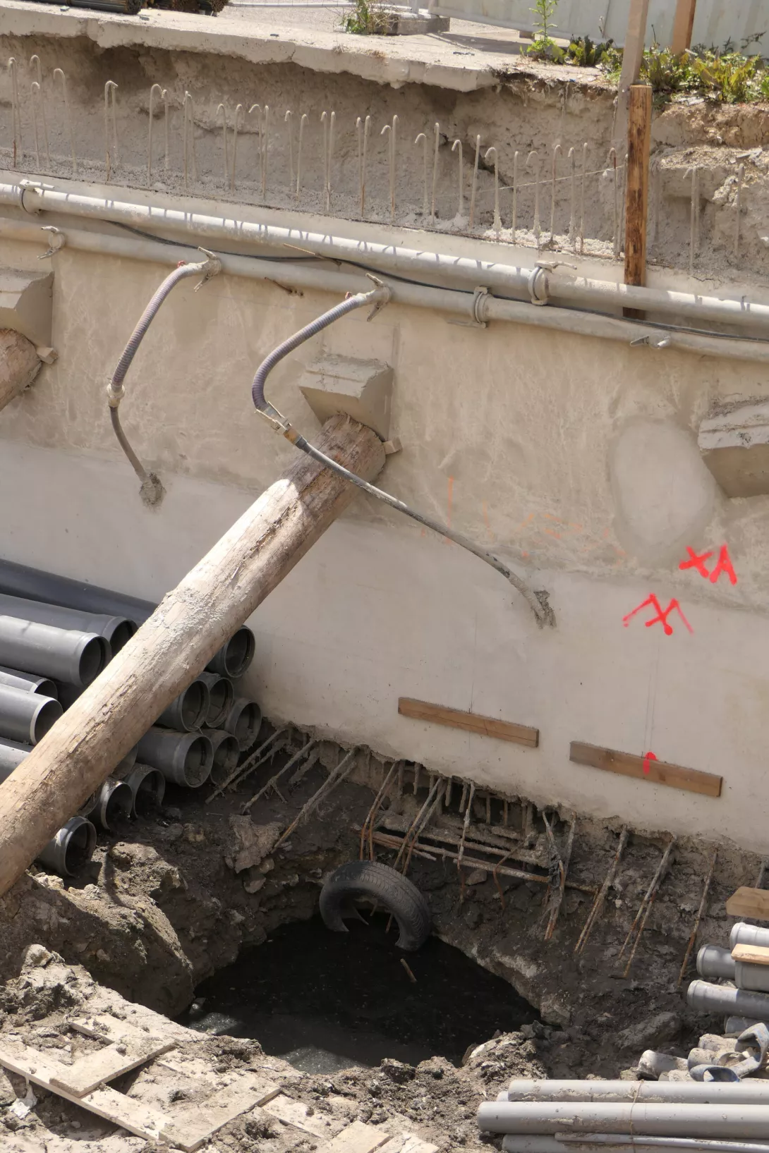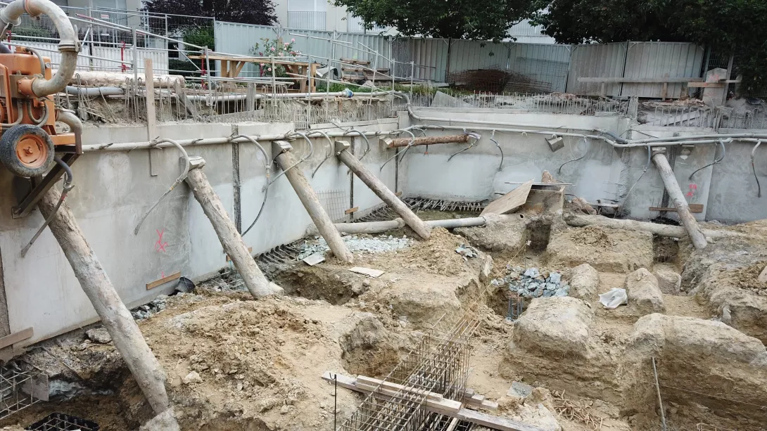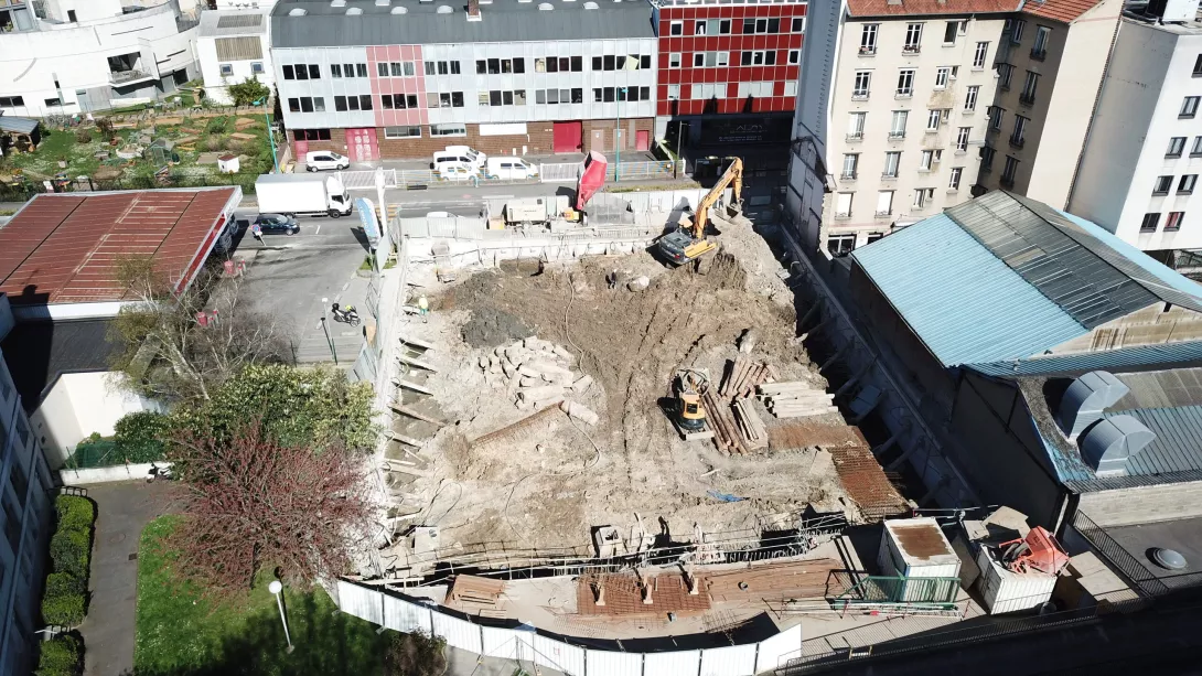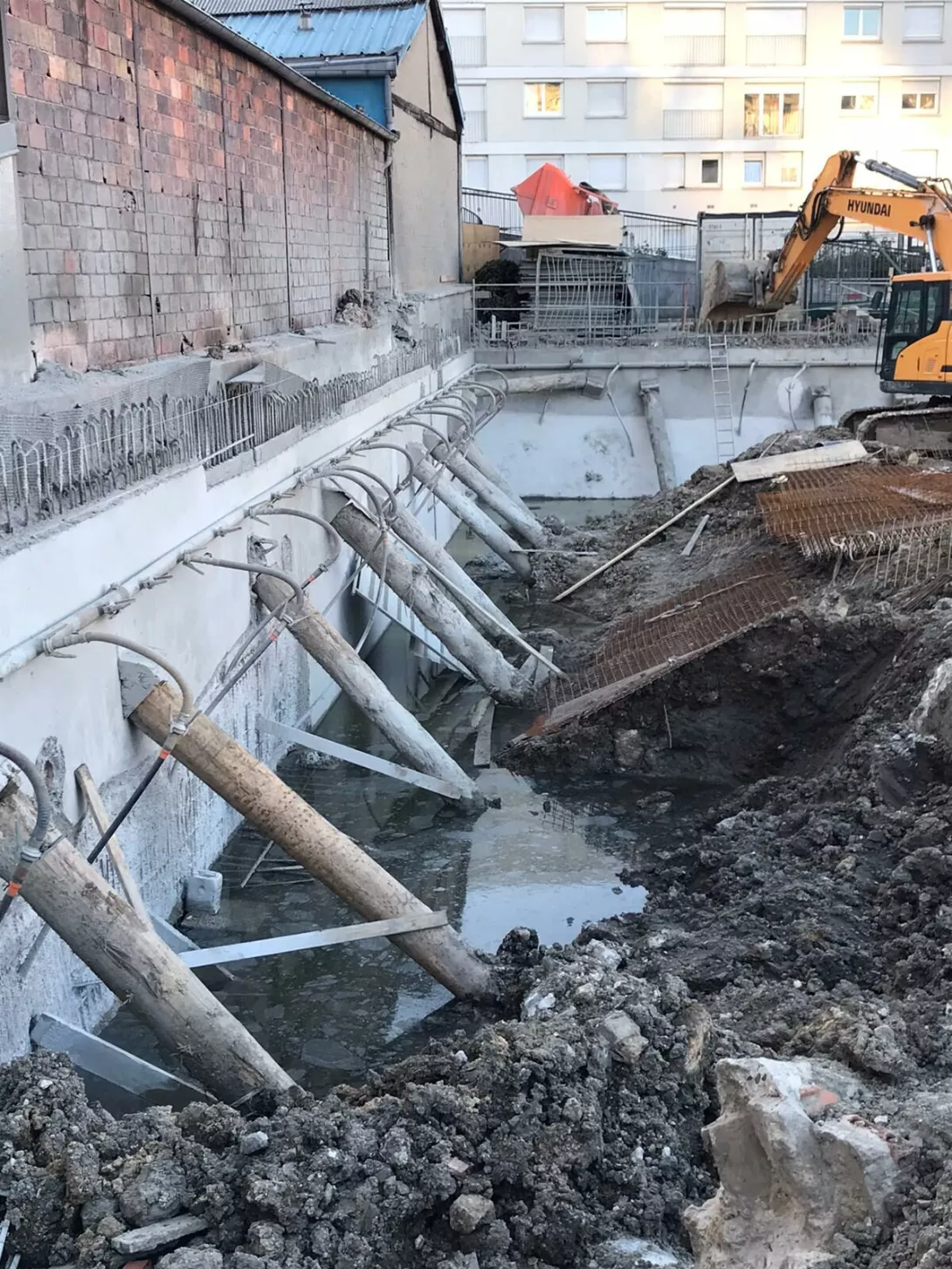 Construction de deux bâtiments neufs R+5 sur un parking en sous-sols R-1, Rabbatement de nappe, Pieux