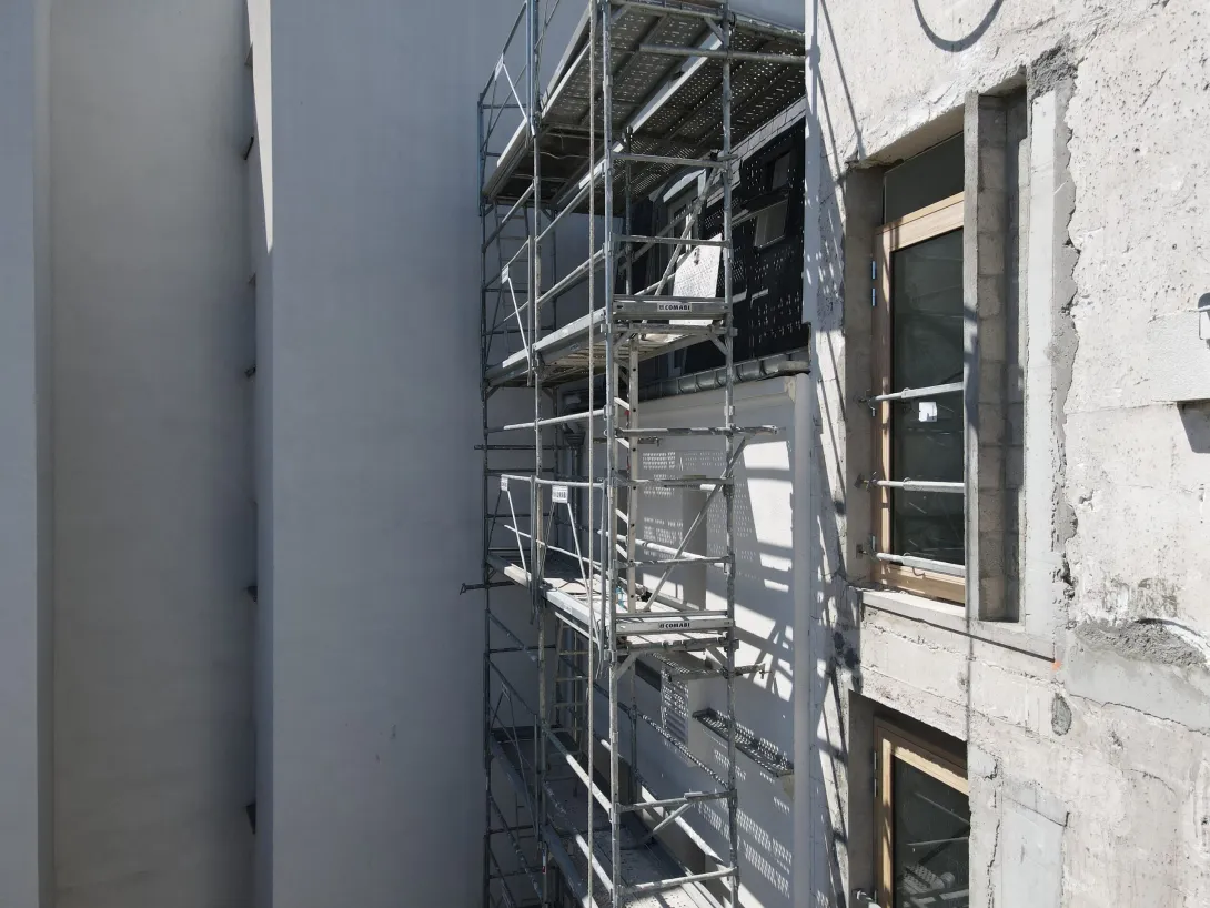 Réhabilitation de 2 immeubles (R+4 et R+6) composés de 26 logements et 3 commerces. Travaux en tout corps d'état en milieu semi-occupé – Création ascenseur extérieur pour le R+6 SHAB : 1 398m²